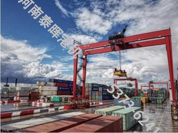 山东东营集装箱起重机厂家轮胎式集装箱起重机是集装箱码头用于集装箱堆码作业的专用机械, 它是由前、后门框和底梁组成的门架, 支承在充气橡胶轮胎上, 在货场上行走。装有集装箱吊具的行走小车沿着门框横梁上的轨道行走, 用以底盘车装卸和堆垛作业。 轮胎式集装箱吊采用机械液压装置或无线电感应装置, 保持在货场上的直线行走。其主要特点 是机动灵活、通用性好。它不仅能前进、后退, 而且还能左右转向, 设有转向装置, 可以由一个堆场转向另一个堆场进行业。整机结构合理、操纵方便、感应灵敏,电气控制采用出色的交流变频技术,全数字PLC控制和CMS(起重机管理系统),具有运转平稳、工作可靠、速度快、维修方便等特点。