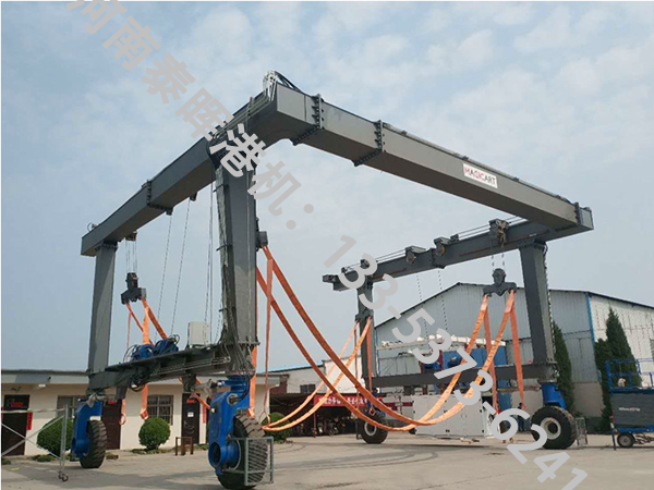 上海游艇轮胎吊厂家游艇搬运机工作原理:游艇搬运机通过卷扬机或起重机等起升装置,将游艇吊起并进行升降操作。起升装置通常由马达、减速机、钢丝绳等组成,通过驱动卷扬机或起重机的卷筒,使钢丝绳收缩或伸展,从而实现游艇的上升或下降;游艇搬运机采用轮胎式行走机构,通过驱动轮的转动实现整机的移动。行走系统通常由电机、减速机、轮胎等组成,可实现直行、斜行、阿克曼转向、前摆、后摆、定轴转向等多种行走模式,以适应不同的场地和工作需求;转向系统用于控制游艇搬运机的行驶方向。常见的转向方式包括阿克曼转向、前轮转向、后轮转向等。转向系统通常由转向机构、转向电机、传感器等组成,通过控制转向电机的转动,使转向机构带动前轮或后轮转向,从而实现游艇搬运机的转向操作。