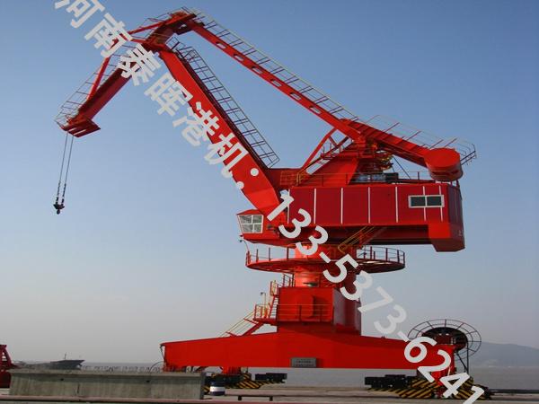 江西新余门座式起重机公司设备是具有地轨运下方可通过铁路车辆或其他地面车辆的门形座架的可回转型起重机门座起重机的回较臂架具有背架类起重机的基本特点。按臂架结构型式,门座起重机可分为刚性拉杆式组合臂架式门座起重机、柔性拉索式组合臂架式门座起重机和单臂架式门座起重机,按门架结构型式,门座起重机可分为圆筒式门座起重机、交叉式门座起重机、撑杆式门座起重机和桁架式门座起重机。江西新余门座式起重机生产厂家可配备专用的集装箱用伸缩式吊具,或子母式吊具,并可在操纵室控制集装箱吊具旋锁的启闭、回转及导板的起落;变幅时集装箱重心不仅可以水平移动且吊具平面也可保持水平位移,利于集装箱进出集装箱船格栅导轨和堆码作业;)回转时,靠吊具的回转与起重机的回转同步,但回转方向相反,以保证集装箱的纵向水平轴线始终与起重机轨道平行;)集装箱吊具回转时,起升钢丝绳的布置使吊具具有产生反旋转力矩的能力,以减少吊具的水平摆动,利于集装箱对位;集装箱重心偏离中心时,具有不使集装箱产生过分倾斜的能力;升降速度可以微调,起制动平稳;能迅速方便地更换装卸属具。